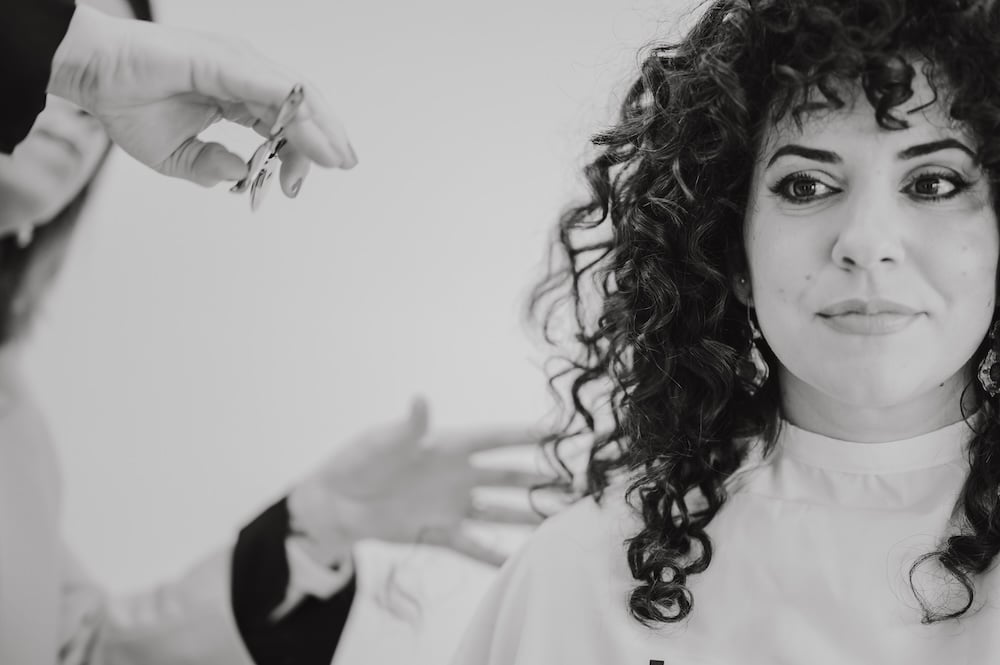 Natürlichkeit erkennen, im trockenen Zustand schneiden. So sehen wir genau, wie deine Haare fallen, wo sie sich bewegen und wie sie am Ende wirklich aussehen. Präzision trifft auf individuelle Looks.